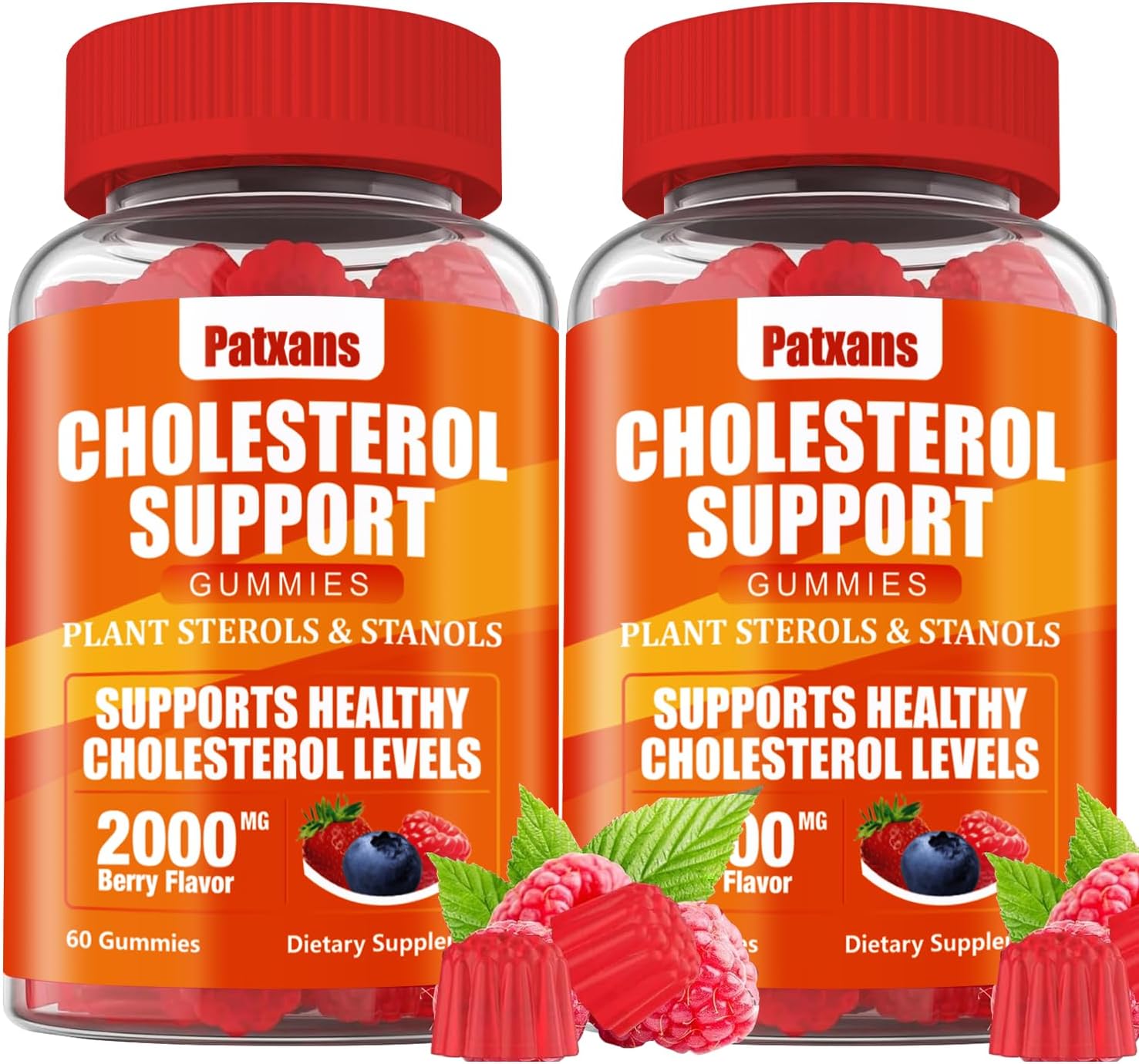 2 Packs Cholesterol Support Gummies, Containing 2000 MG of Plant Sterols & Sterols, Cholesterol Complex Gummies, Support Healthy Cholesterol Levels, Energy Support, Mixed Berry Flavor, 120 Cts