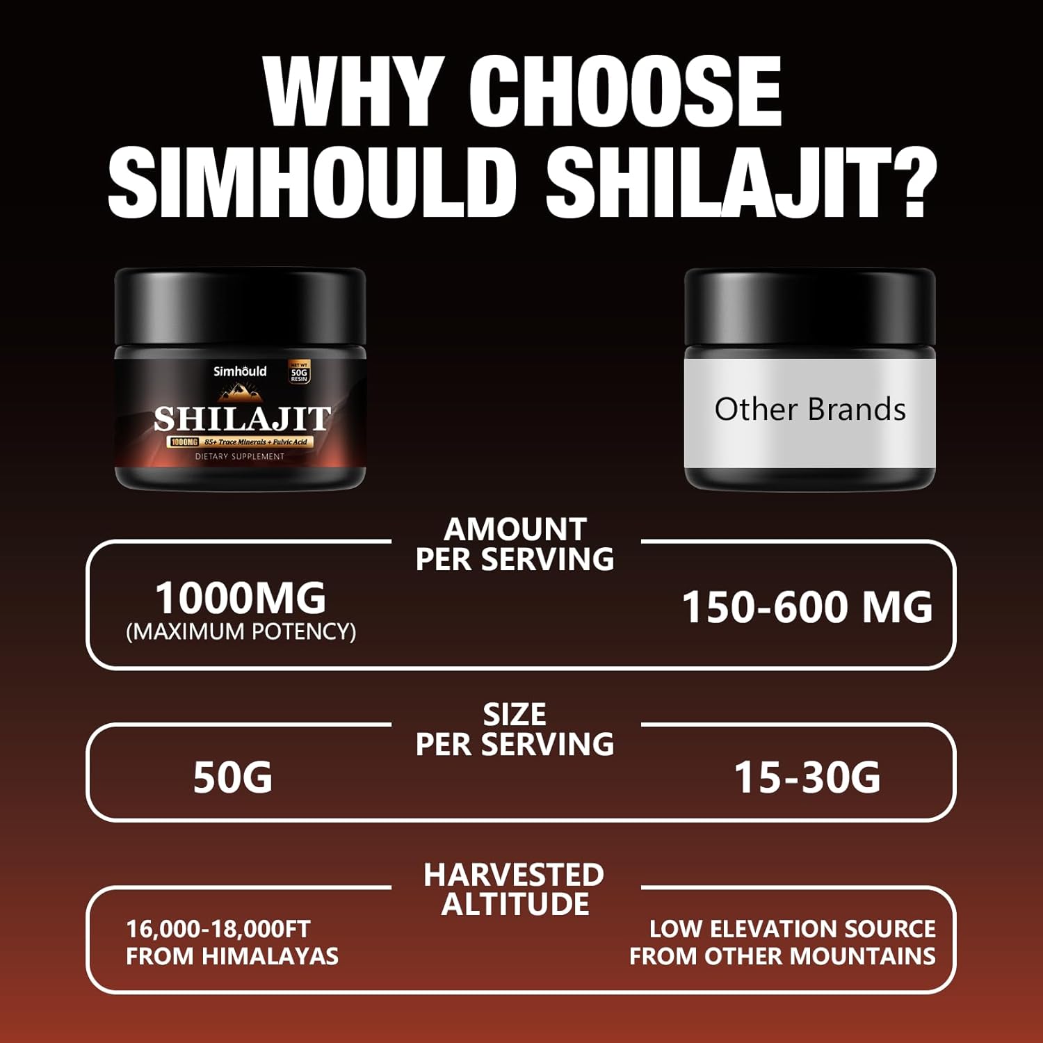 - Why Choose Simhould: Each Simhould shilajit contains 1000mg Purified Altai Shilajit Resin, are an easy to takesuitable for women, men, adults. You can incorporate them into your daily life. Each bottle of our shilajit is carefully crafted with expertise, ensuring you receive the highest quality product.