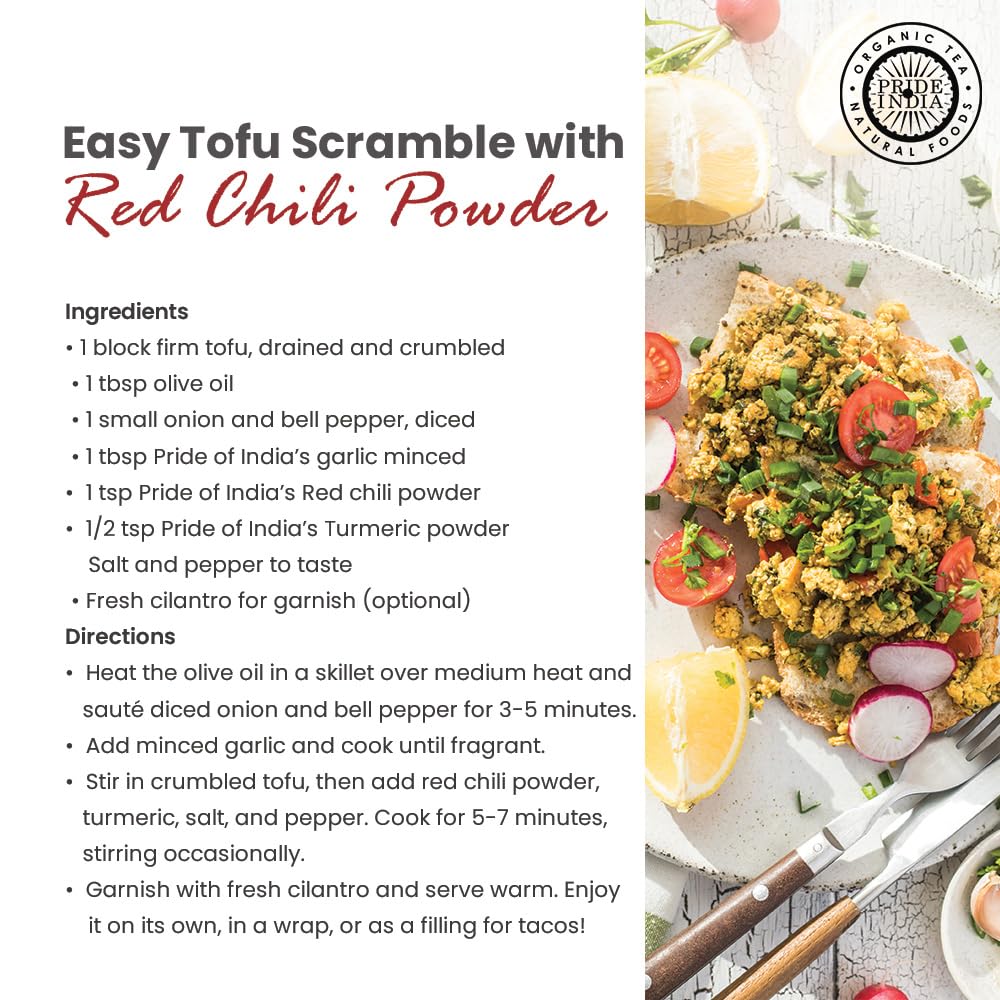 - VERSATILE APPLICATIONS: Pride of India red chili powder is a classic that is a must-have in a variety of Indian dishes. Apart from that, use our chili powder in Southwest or Mexican-inspired dishes like tacos, chili, enchiladas, pepper stuffing, and more for the right amount of spice.