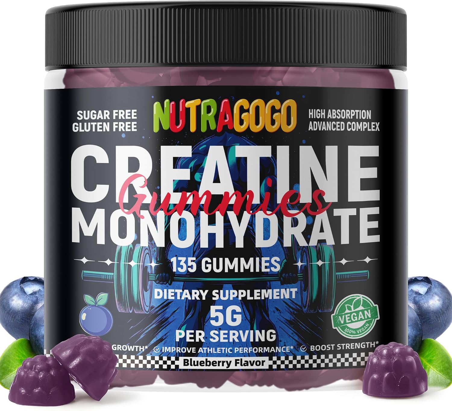 Creatine Monohydrate Gummies for Men & Women-5g of Creatine Monohydrate per Serving - Sugar Free,Vegan, Blueberry Electrolyte Chews, 135 Count