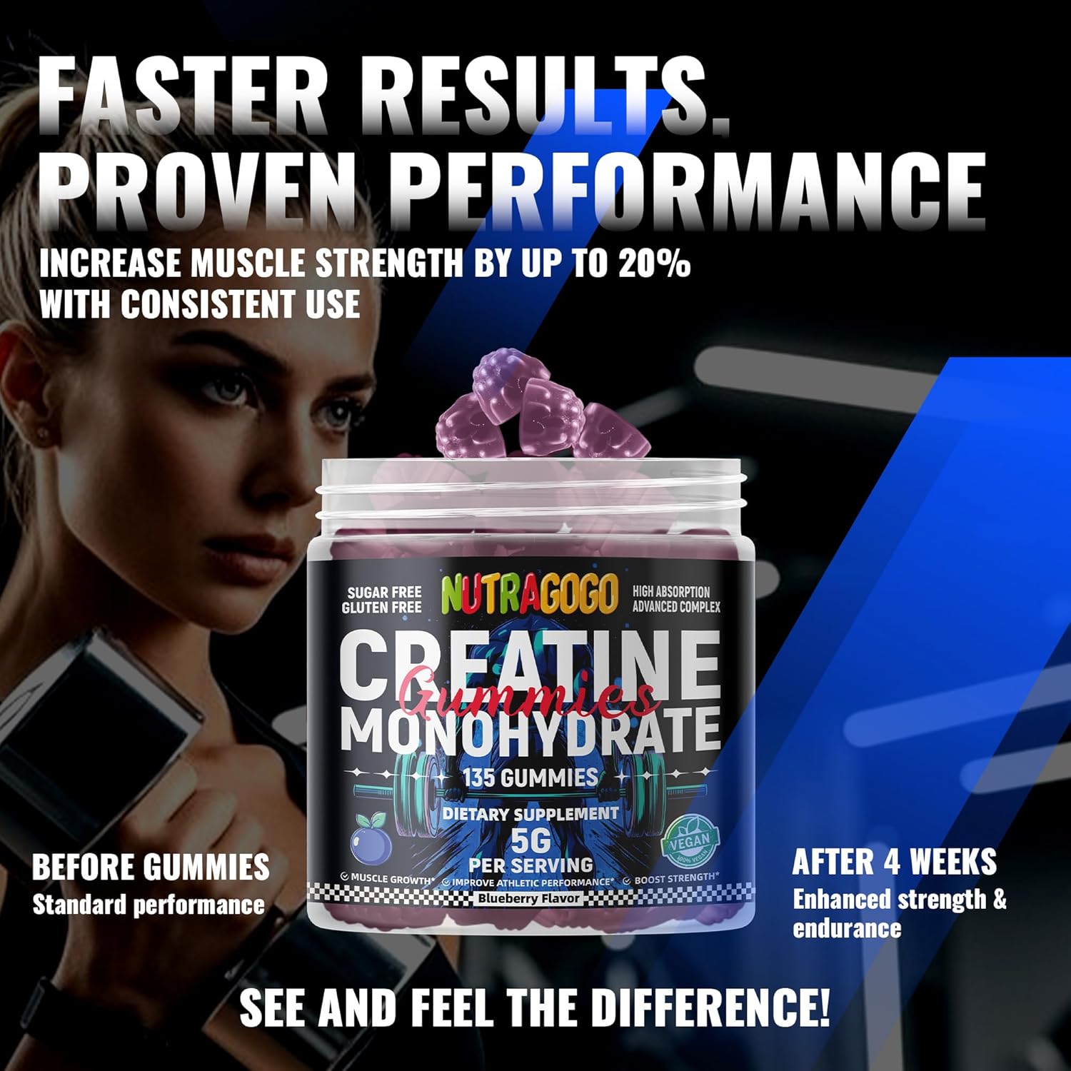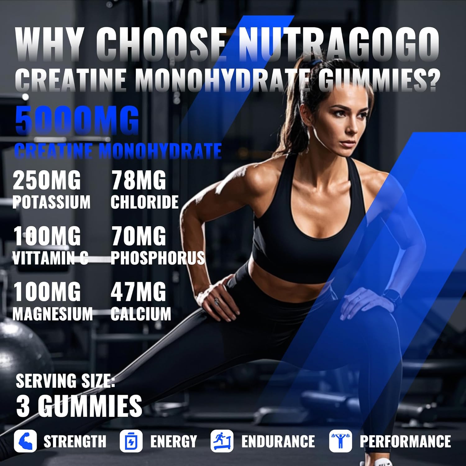 - [Premium Formula,Maximum Efficacy]: Our Creatine monohydrate gummies contains 5g=3 gummies pure creatine monohydrate per serving combined for Maximum Benefits.