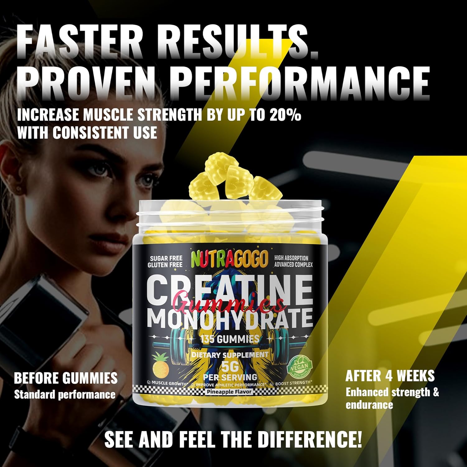 - [Premium Formula,Maximum Efficacy]: Our Creatine monohydrate gummies contains 5g=3 gummies pure creatine monohydrate per serving combined for Maximum Benefits.