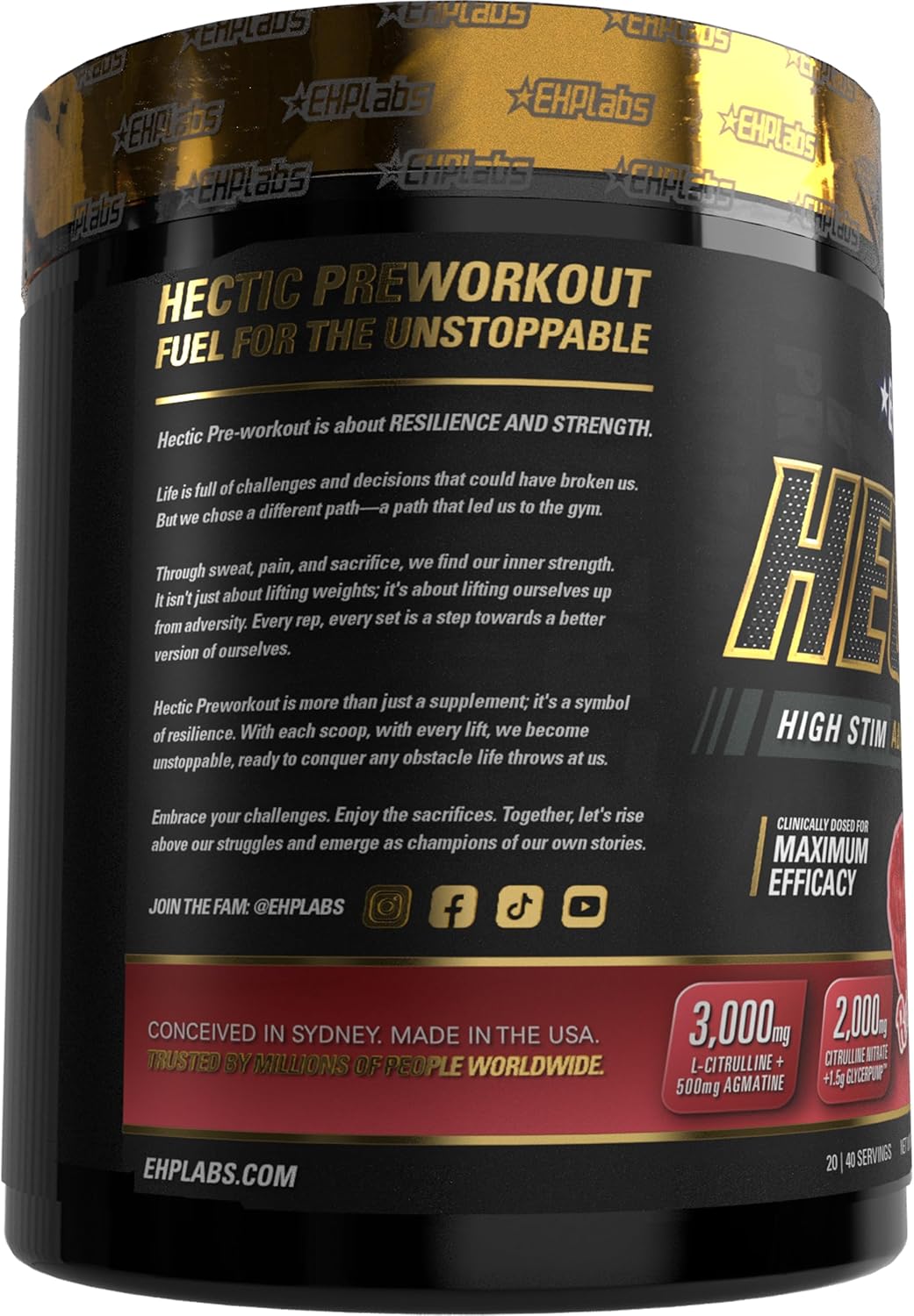 EHP Labs Hectic PreWorkout - High Stim Advanced Pre Workout Powder for Max Performance - Caffeine, Beta Alanine, Coconut Water - Energy, Pump, Recovery & Hydration - 40 Serves (Raspberry Refresh)