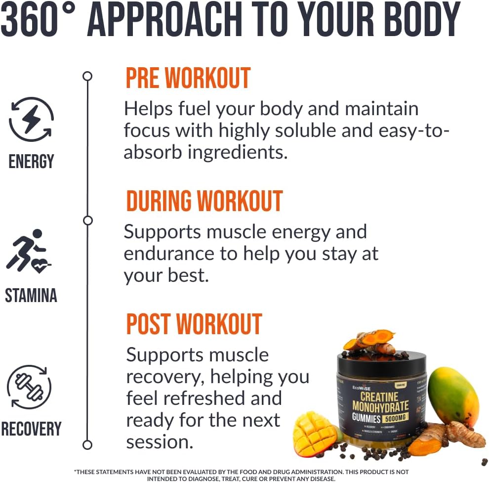 - HIGH-STRENGTH FORMULA – Delivers 5000 mg of creatine monohydrate per serving, packed into convenient, chewable gummies for daily use.