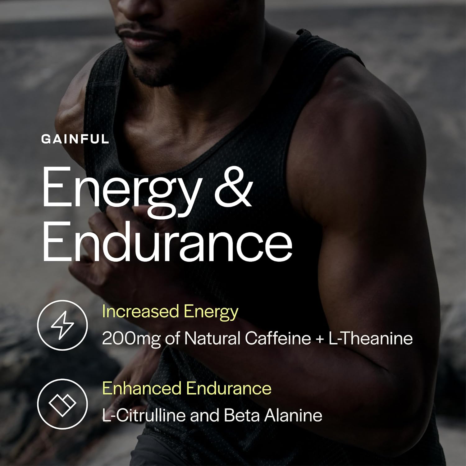 Gainful High Intensity Pre Workout Powder with 200mg Caffeine, 5g Creatine, Watermelon Flavor, Supports Energy, Strength, Endurance, & Recovery with BCAAs, Beta Alanine, L-Citrulline, 20 Servings