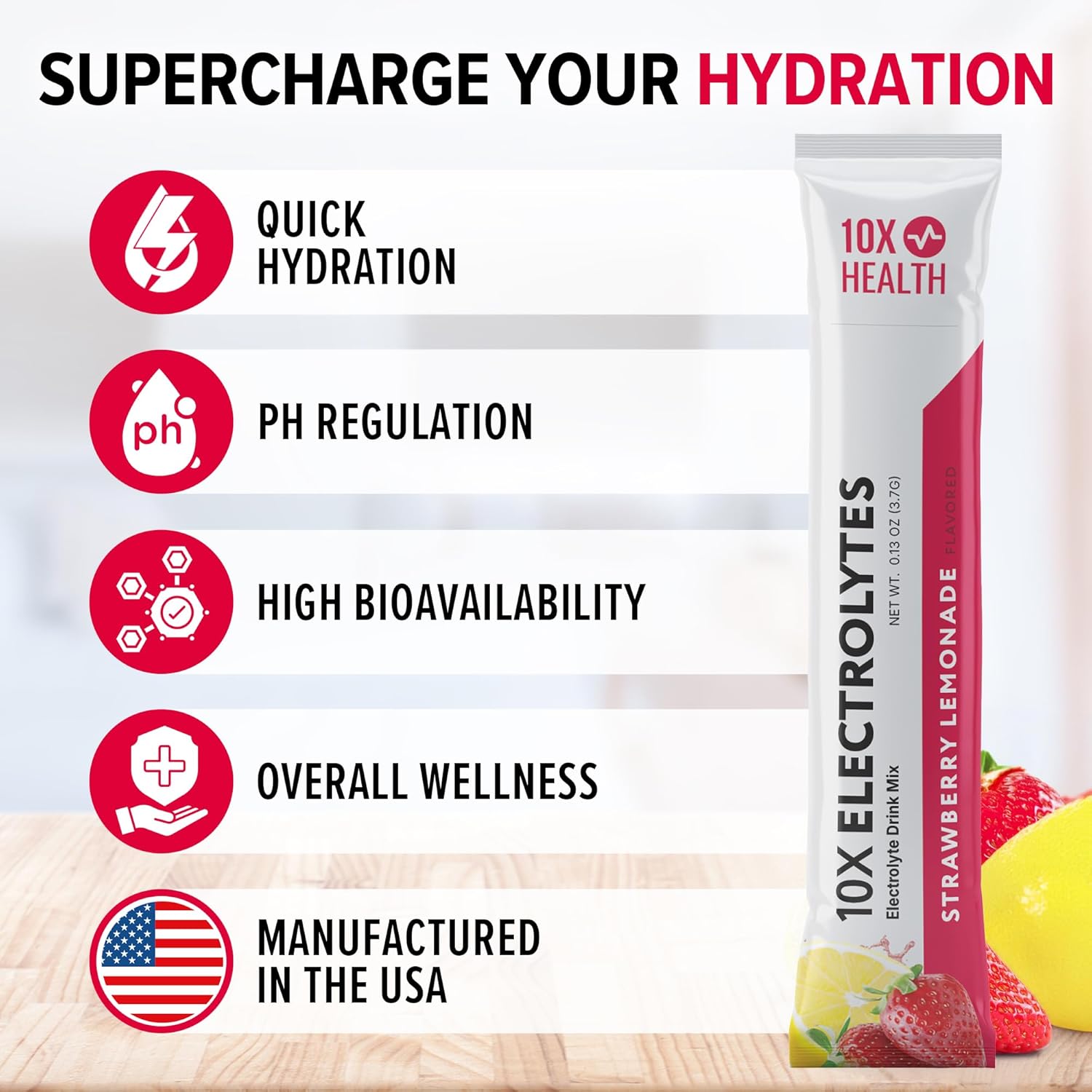 - Quality and Safety Focused: The 10X Electrolyte Packets from 10X Health System are proudly manufactured in the USA using premium, carefully sourced domestic and globally sourced ingredients. Each batch undergoes rigorous quality and purity testing, ensuring your wellness.