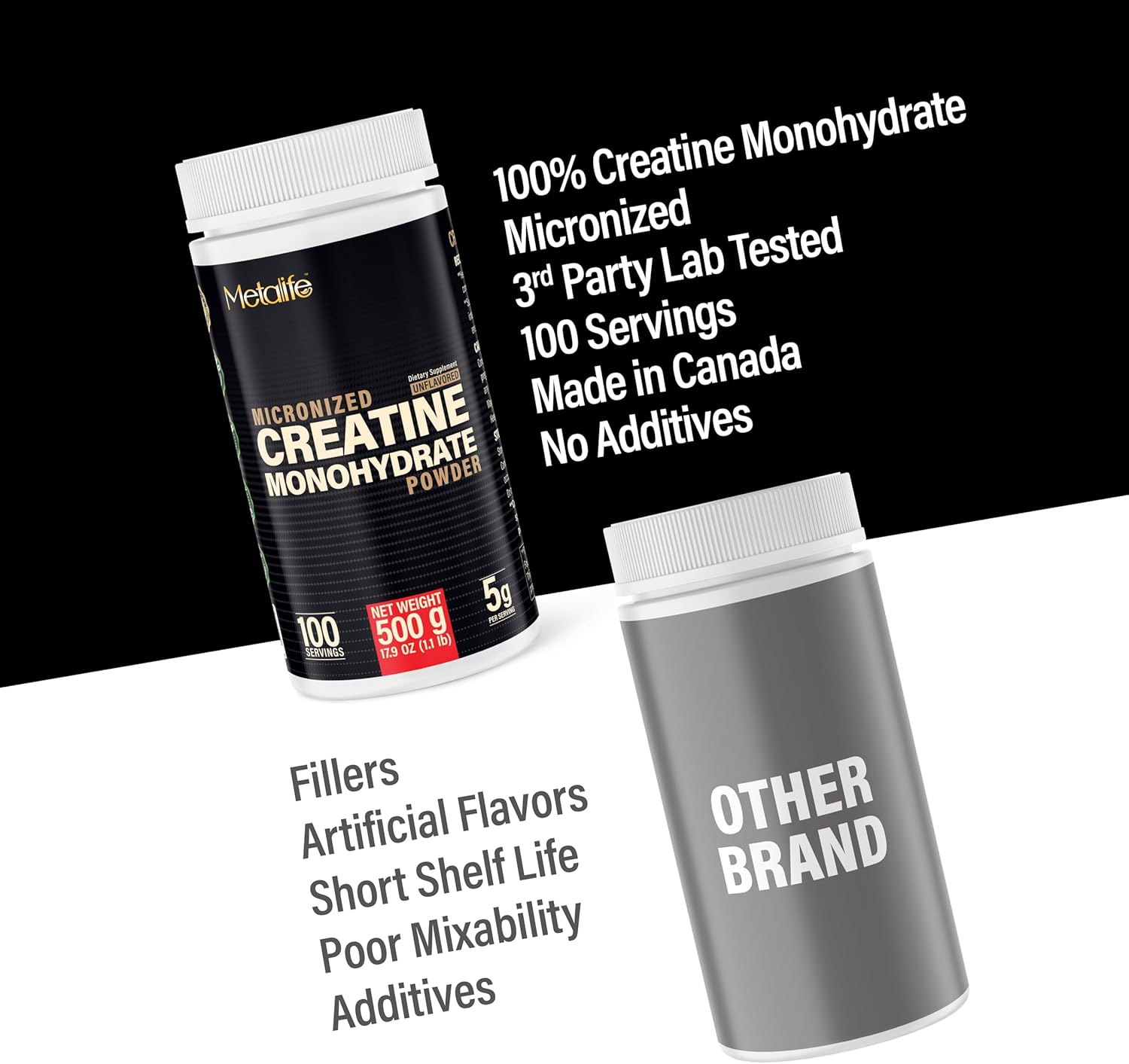 100% Pure Creatine Monohydrate Powder, Canada-Made, 500 g (100 Servings) Micronized Powder, Muscle Growth, Unflavored, Ideal for Athletes & Fitness Enthusiasts, Third Party lab Tested, Vegan