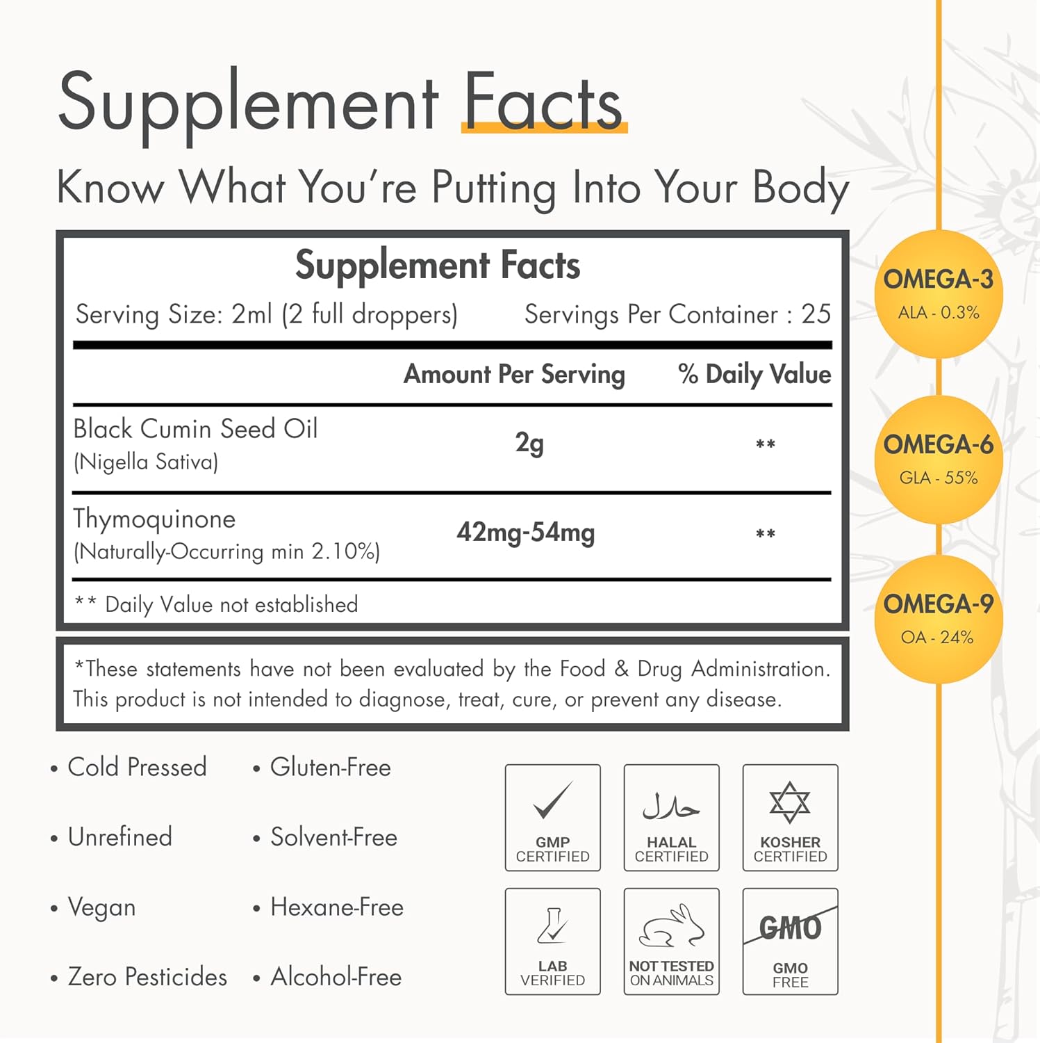 - Primary Supplement Type : Black Cummin Seed Oil & Thymoquinone