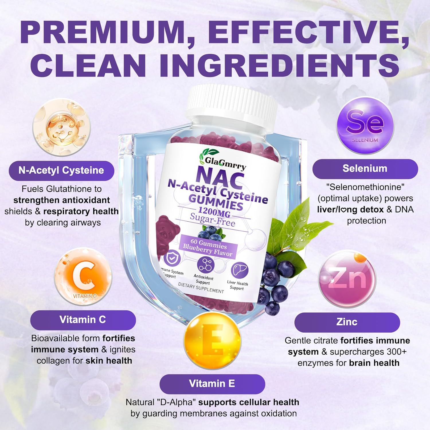 - Maximized Absorption vs Traditional Capsules: Why settle for hard-to-swallow N-Acetyl Cysteine 600mg pills? Our fast-absorbing N-Acetyl Cysteine gummies offer double the potency (1200mg) with superior bioavailability. The smarter choice for respiratory health and year-round immune protection in easy-chew format.