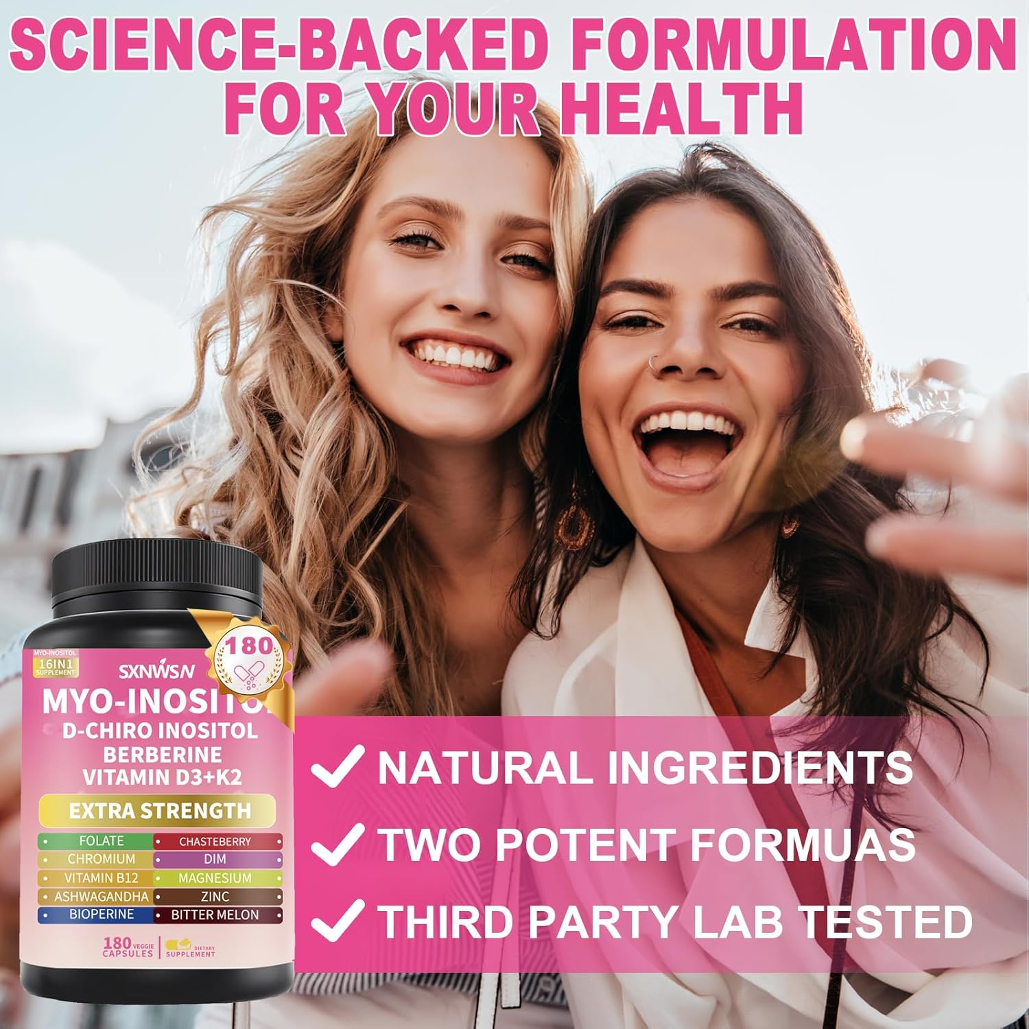 Myo-Inositol & D-Chiro Inositol Supplement with Berberine Ashwagandha - Healthy Hormone Balance & Healthy Ovarian Support for Female Health & Wellness
