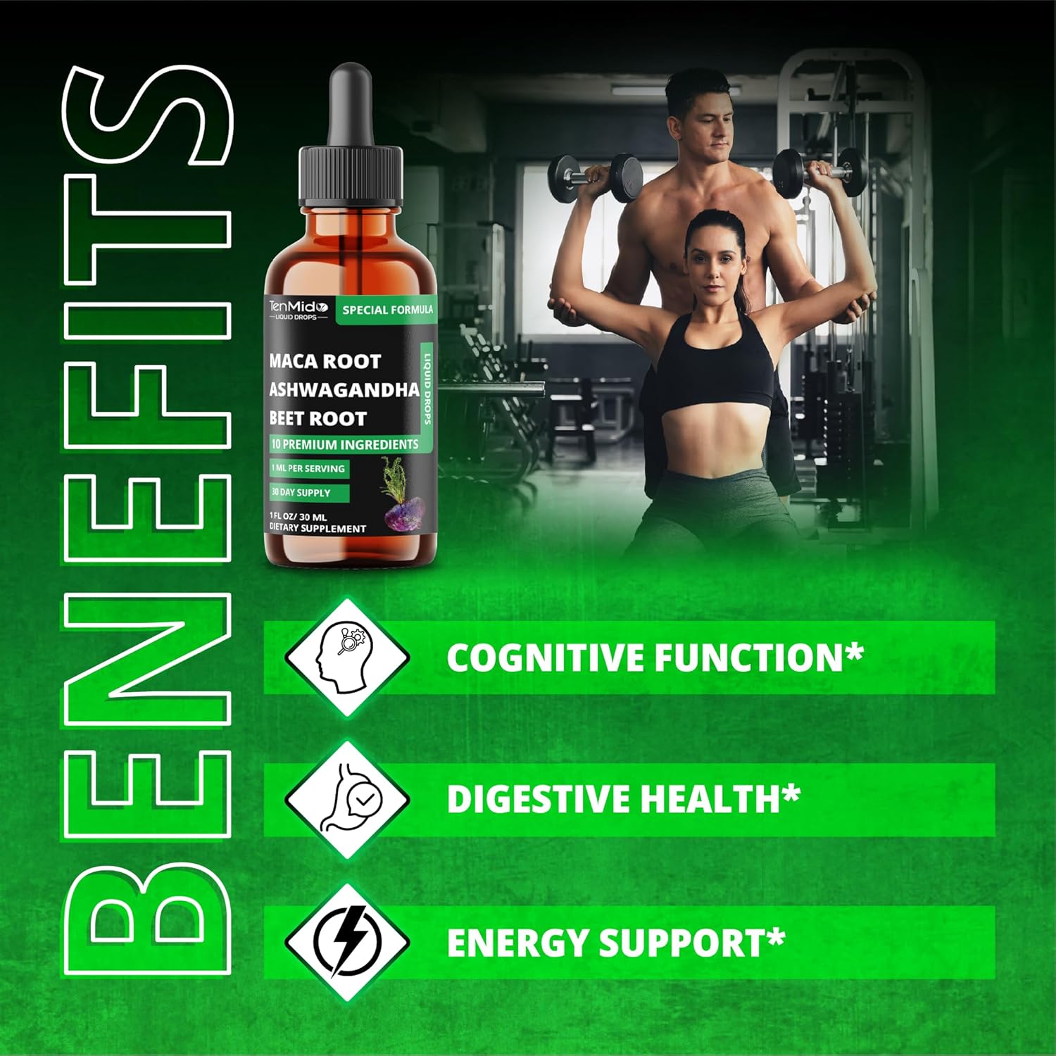 - Powerful Benefits: 10in1 Maca Liquid Drops Supplement the to support natural energy levels, cognitive function, mood balance, and digestive health.