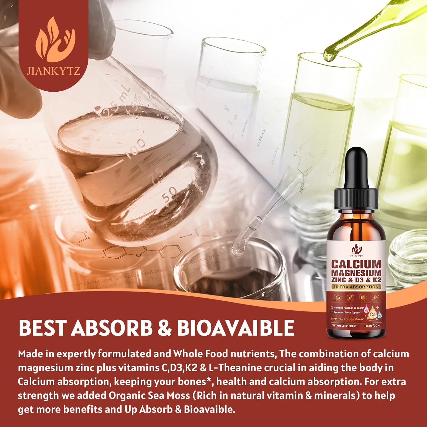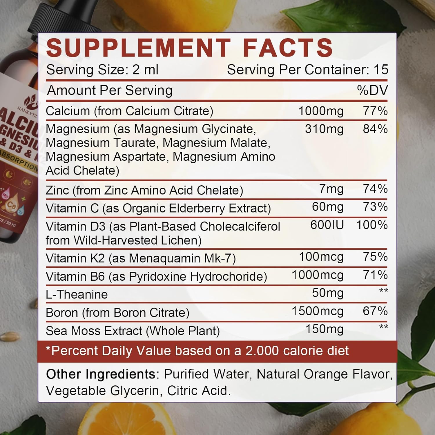 (2 Pack) Calcium Magnesium Zinc Liquid Drops for Women and Men - Bone & Teeth, Immune Support, Calcium Citrate 1200mg with Vitamin D3 Liquid Drops for Adults, Sugar Free, Vegan, Orange Flavor